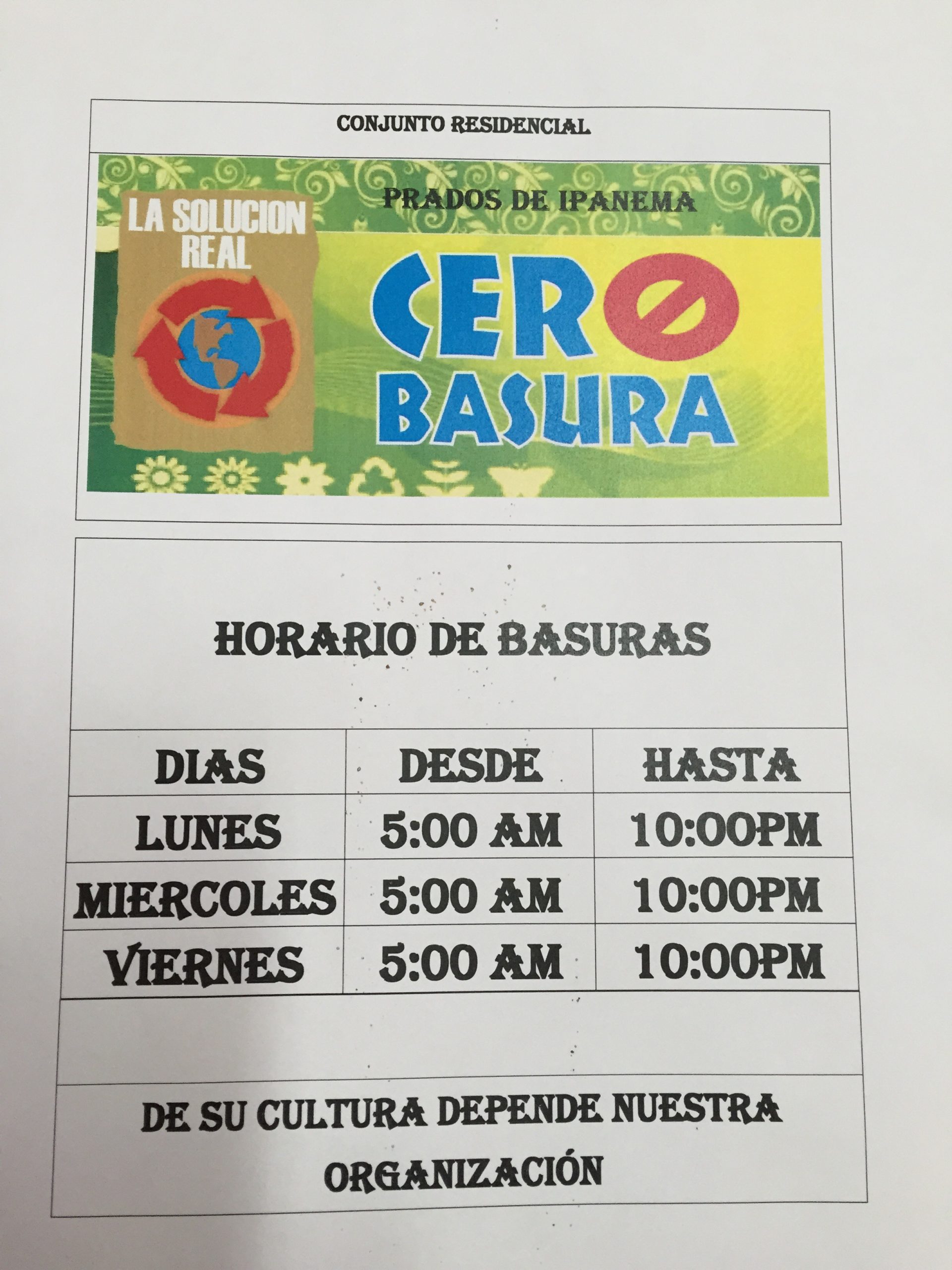 Tenemos habilitado el shut de basuras para su uso en los horarios establecidos